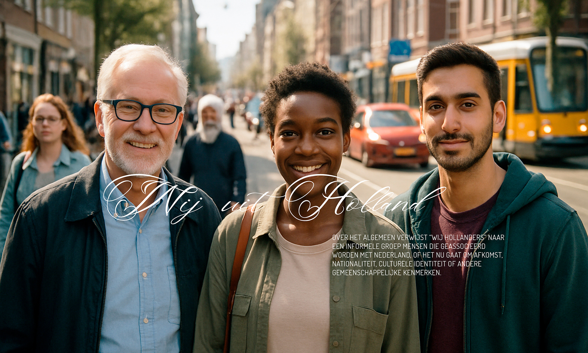 “Wij Hollanders” verwijst informeel naar mensen die afkomstig zijn uit Nederland, vooral uit de historische regio Holland of de provincies Noord-Holland en Zuid-Holland. De term kan worden gebruikt om een gevoel van gemeenschap of verbondenheid onder Nederlanders aan te duiden, vooral in informele gesprekken of discussies over culturele identiteit.